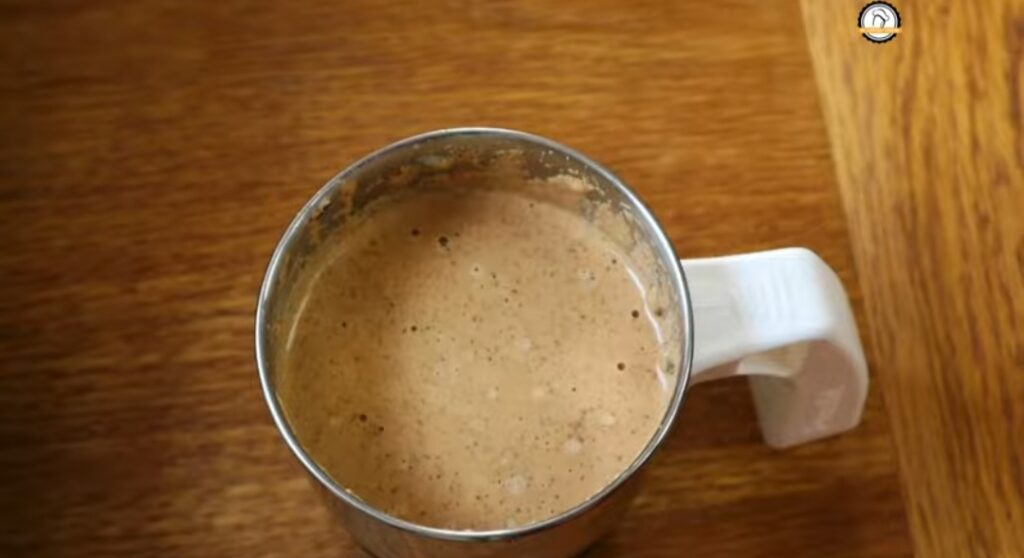 - Add the freshly ground arachu vitta sambar paste to the pot and mix it in with required water.