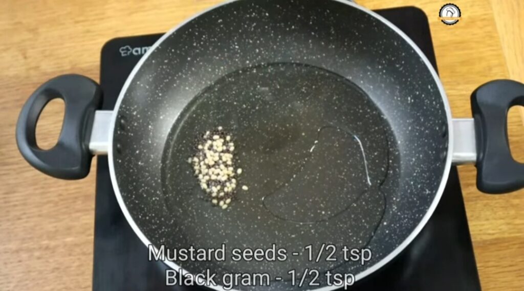 In a seperate pot, heat 2 tablespoons of oil. Add mustard seeds and urad dal let them splutter.