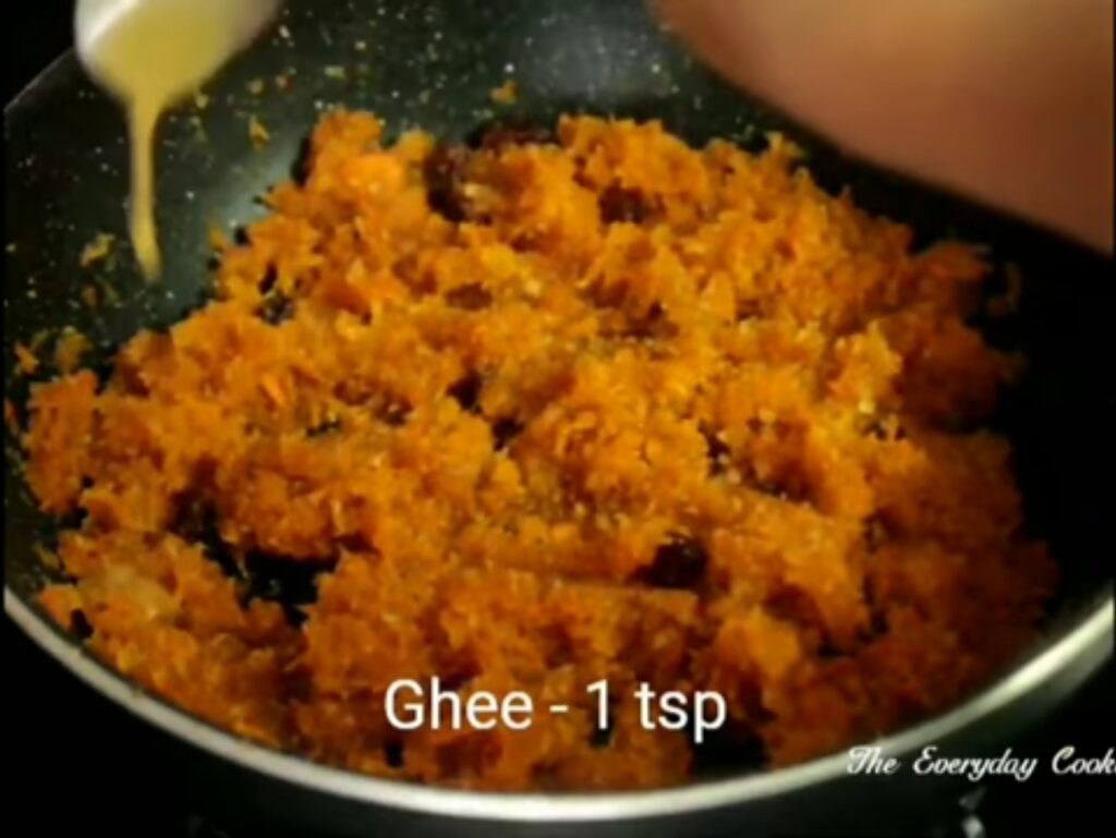 - Add another tsp of ghee and add the grated carrot.