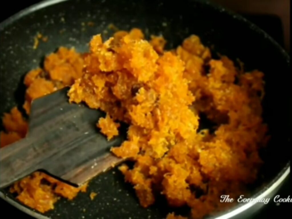 Step 7: Transfer the carrot coconut mixture into a bowl. Let it cool down a little bit.