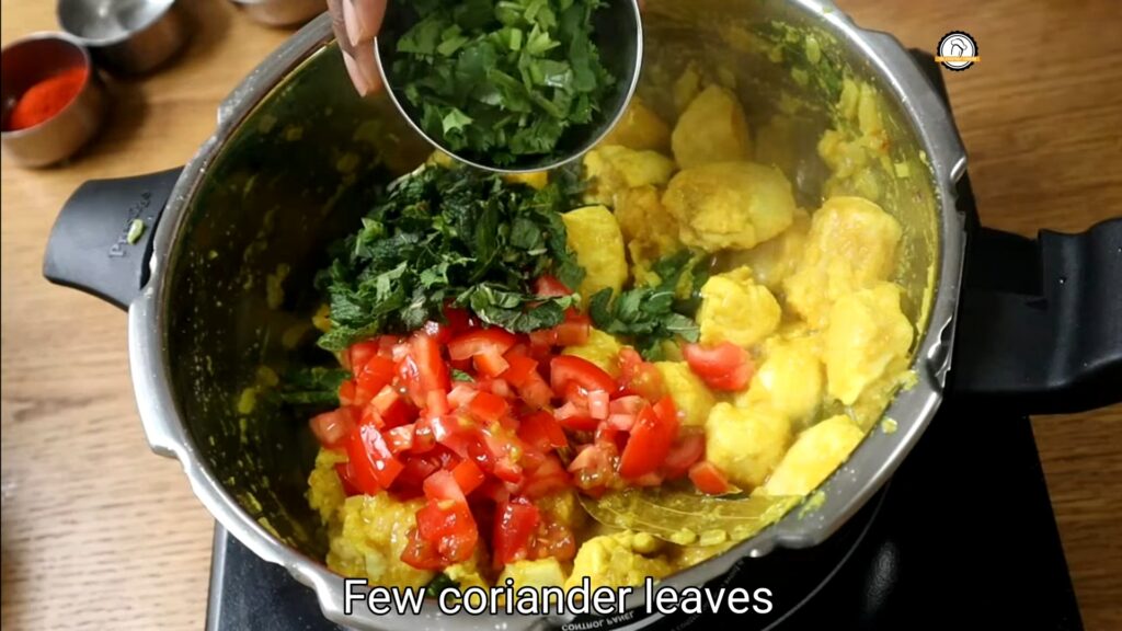 • Once done, open the cooker and garnish the curry with freshly chopped coriander leaves.