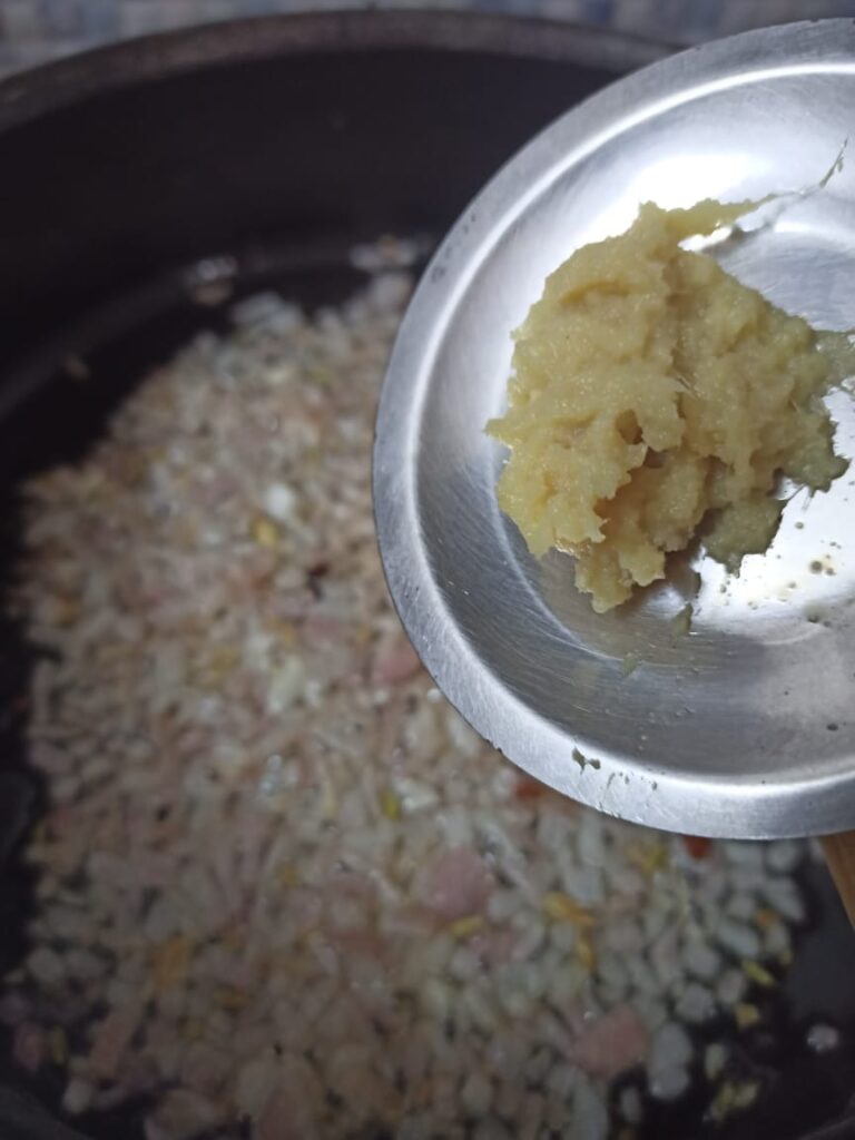 • Saute the onions until it turns translucent and add the ginger garlic paste.