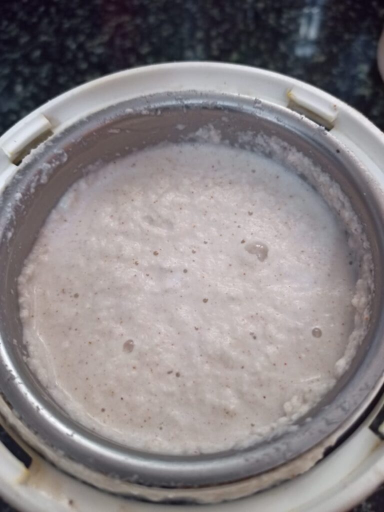 • Add enough water and grind the coconut and fried gram into a thick paste.