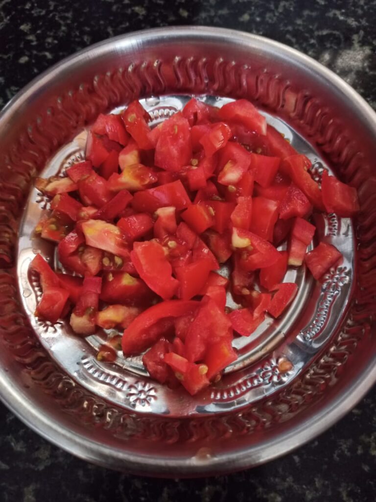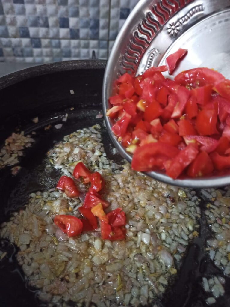 • Add the tomatoes and saute them for few minutes until it is cooked.