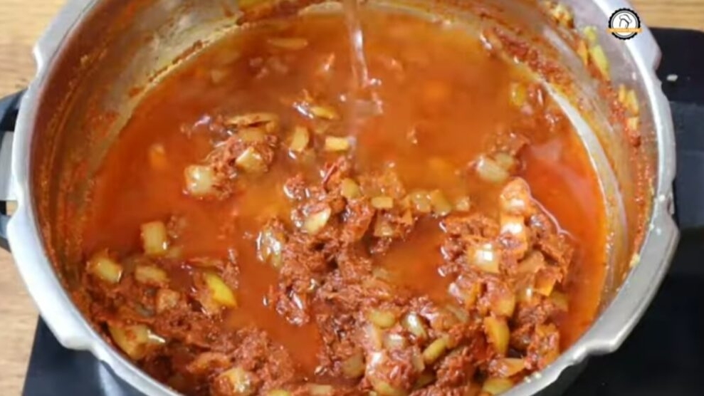 - Close the cooker without weight and cook for 5 minutes in low flame or till oil separates.