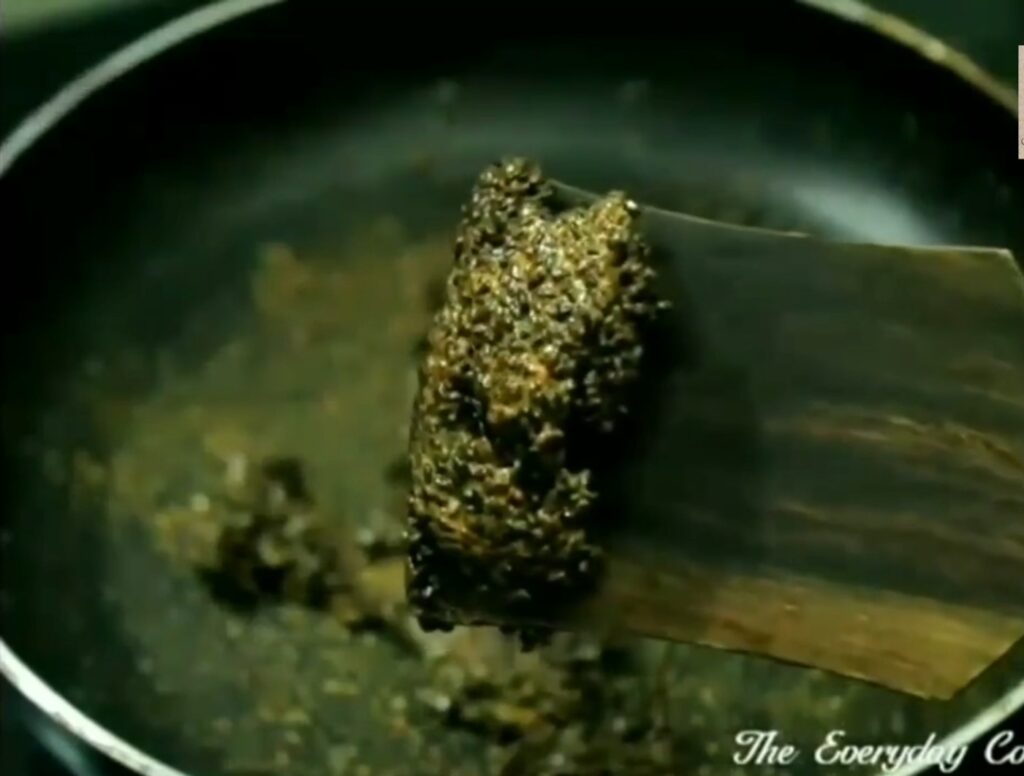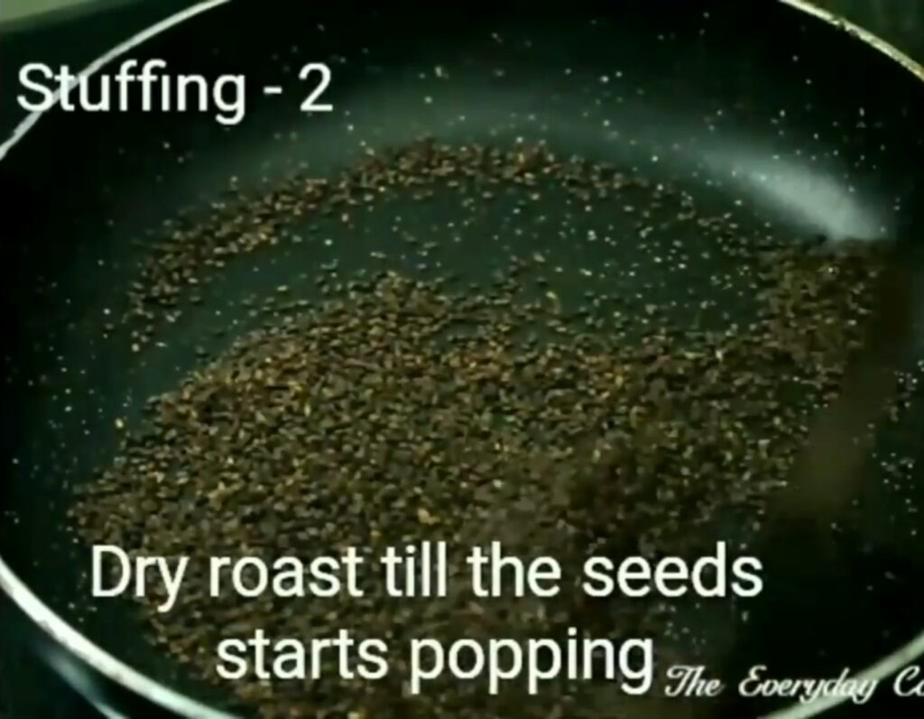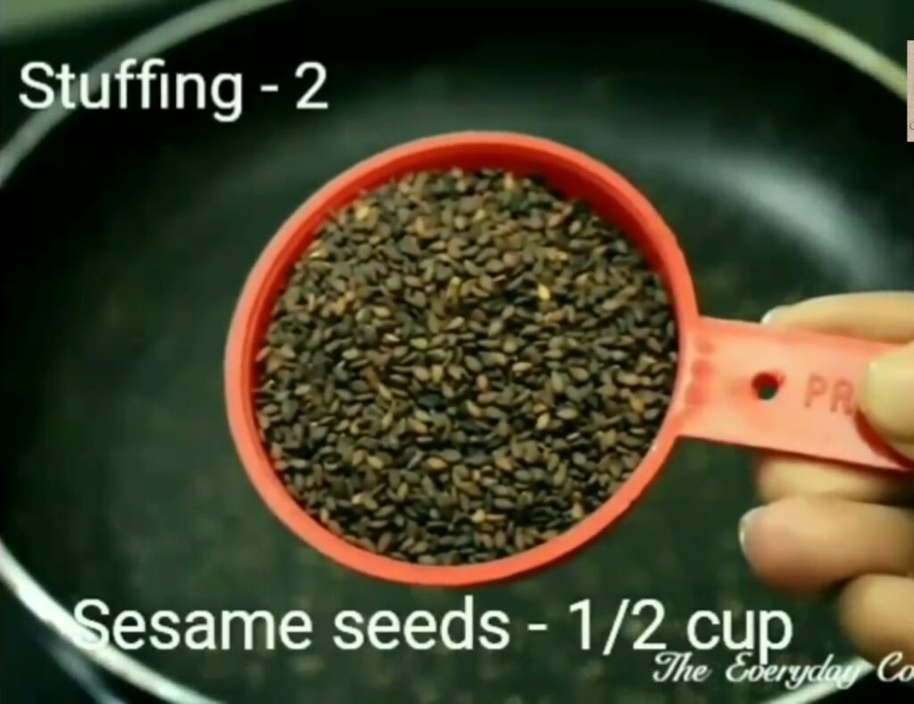 - Take half cup of black sesame seeds, dry roast them on pan until 1 or 2 starts popping.